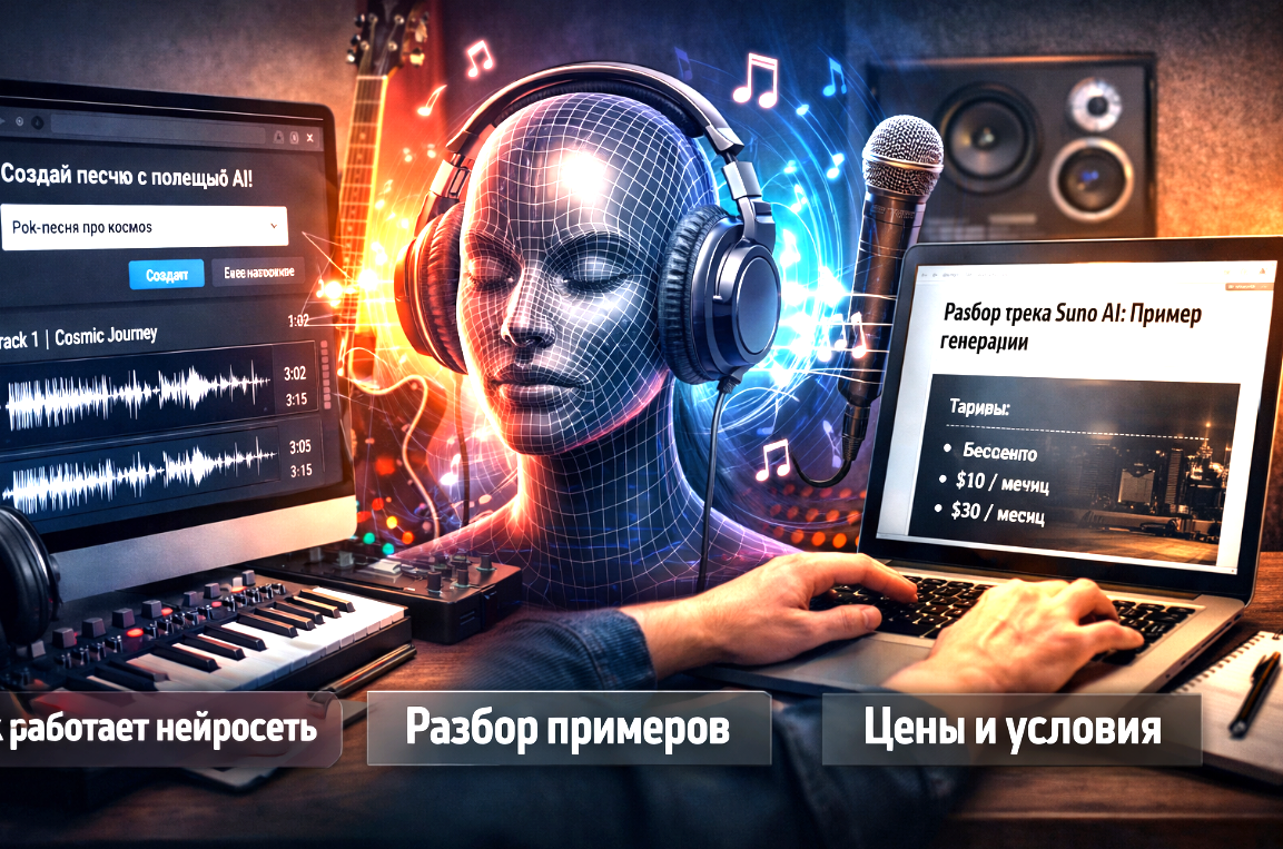 Suno AI music: как работает нейросеть — примеры, цены 2026 и владение треками