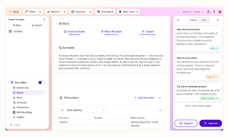 7. Sudowrite — цифровой соавтор для прозаиков