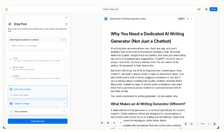 • Тюнинг тональности через кастомные «Use Cases»: В 2026 году Rytr позволяет создавать собственные сценарии использования. Вместо того чтобы выбирать «Blog Idea», создайте технический пресет, обученный на ваших самых успешных постах. Позволит облегченной модели сервиса имитировать ваш стиль без переплаты за тяжелые Enterprise-решения вроде Jasper.