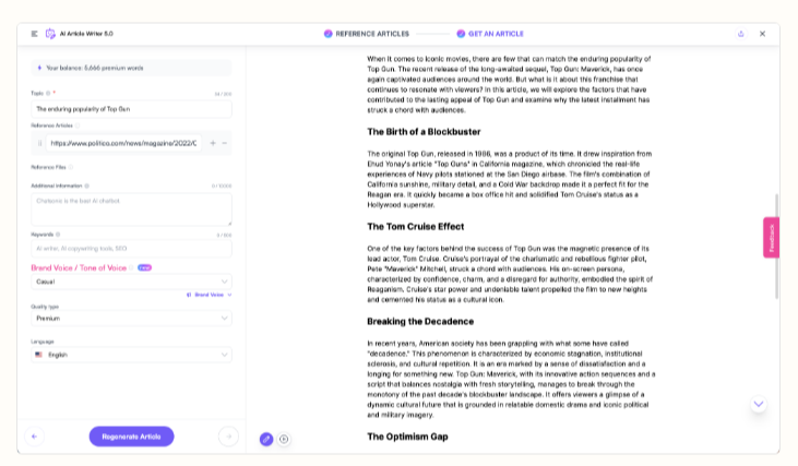 • Синхронизация контекста в реальном времени: В отличие от статических моделей, Writesonic умеет проводить поисковый аудит перед генерацией. Чтобы выжать максимум, подавайте в промпт URL-адреса трех главных конкурентов из ТОП-3. Система найдет информационные пробелы в их статьях и сгенерирует текст, который закрывает интент пользователя полнее, чем лидеры рынка.