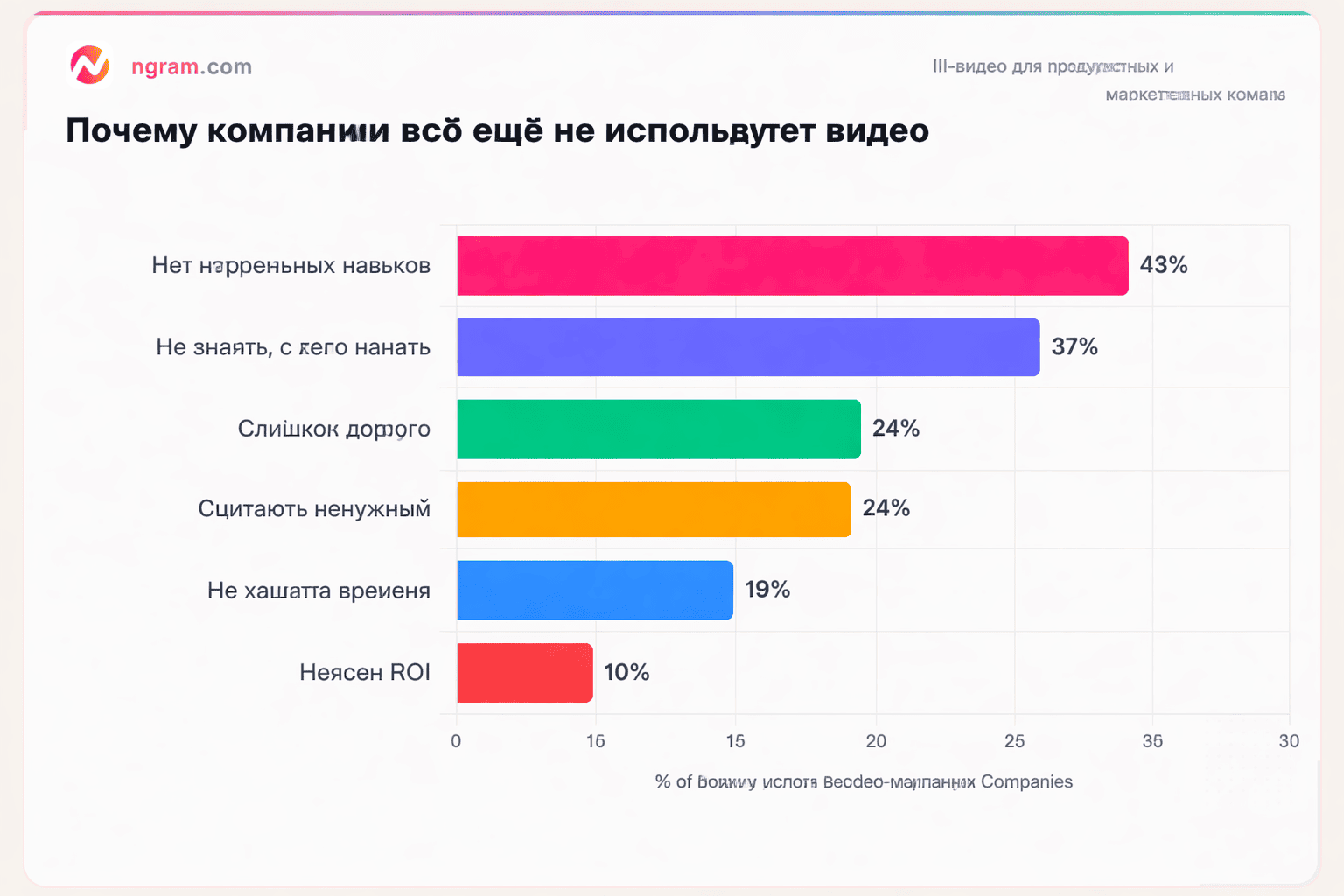 Недостаток внутренних навыков — 43% компаний считают, что у них нет достаточно квалифицированных специалистов для эффективного создания видеоконтента.
